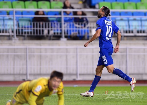 후반 수원 데얀이 골 찬스를 놓친 후 아쉬워하고 있다.