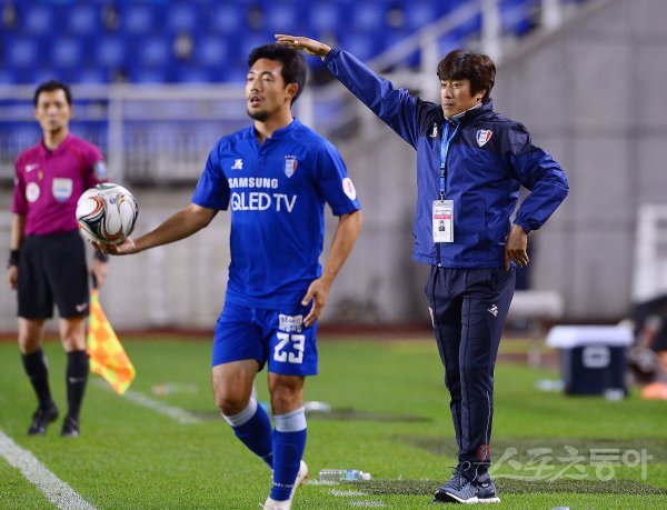 후반 수원 서정원 감독이 선수들에게 작전을 지시하고 있다.