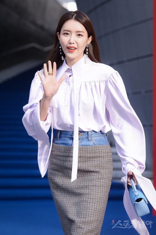 배우 채정안이 18일 서울 중구 동대문디자인플라자(DDP)에서 열린 2019 S/S 헤라 서울패션위크 YCH 컬렉션에 참석해 포토타임을 마친 후 카메라를 보며 인사를 하고 있다.