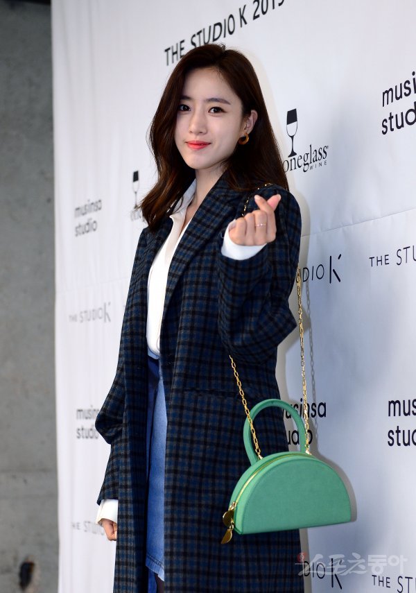 18일 서울 동대문 무신사스튜디오에서 열린 ‘THE STUDIO K의 2019 S/S 컬렉션 SinK’에 참석한 함은정이 카메라를 향해 포즈를 취하고 있다.