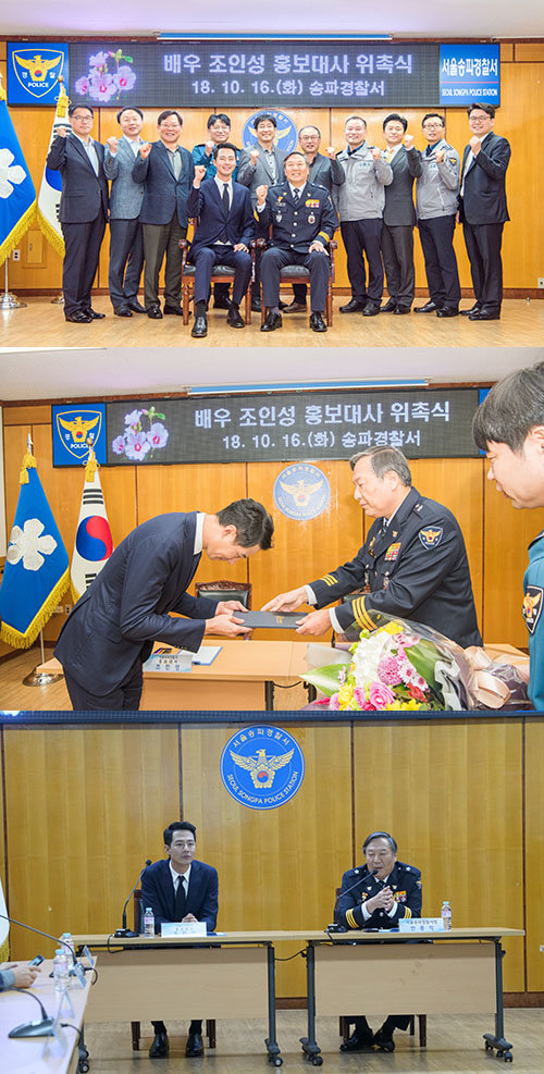 송파경찰서장과 송파경찰서의 경찰관이 함께 참석한 위촉식 후 조인성은 송파구 경찰과 함께 주민의 순찰 요청지역인 가락동 공원 주변에 순찰을 돌며 합동 순찰하는 등 다양한 범죄예방 홍보 활동에 참여했다.