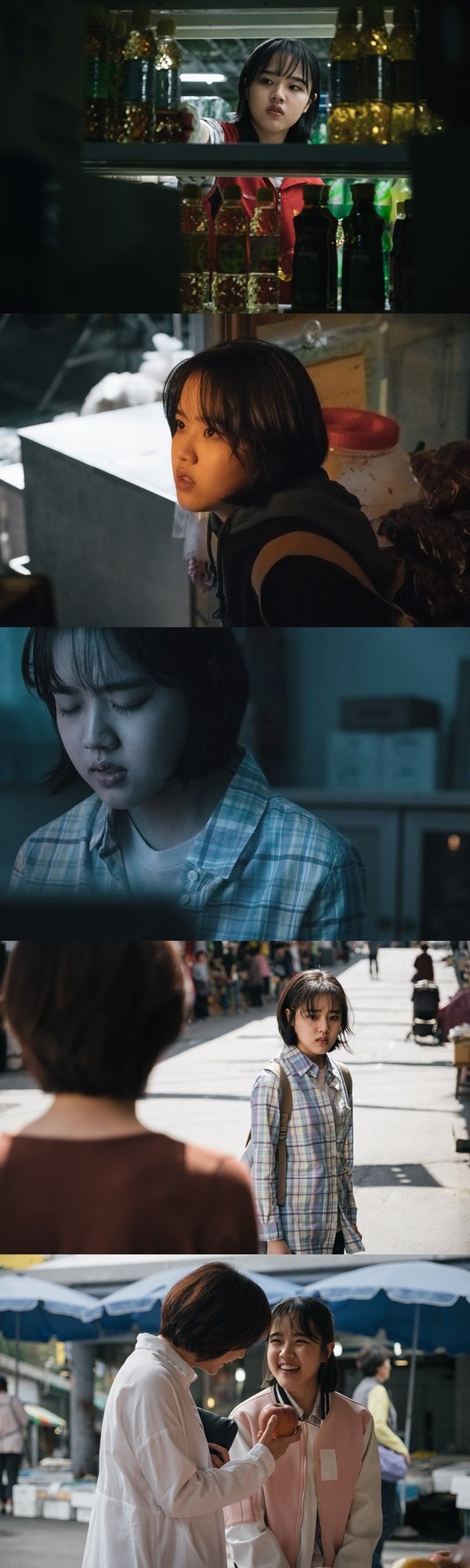 공개된 5종 단독 스틸은 극 중 열 아홉 살 어른 아이 ‘영주’로 완벽하게 몰입한 배우 김향기의 그동안 볼 수 없었던 낯설고 새로운 모습이 담겼다. ‘영주’는 교통사고로 부모를 잃고 하나 뿐인 동생과 사는 열 아홉 살 소녀로, 자신의 학업은 포기하더라도 마트 아르바이트 등 여러 일을 하면서 동생을 책임지려 한다. 두려워하는 것 같지만, 물러서지 않을 것만 같은 결연함의 엿볼 수 있는 ‘영주’의 표정은 복잡 미묘한 모든 감정을 고스란히 담아낼 수 있는 또 다른 김향기의 얼굴이다. 덕분에 그녀가 서있을 절망 끝의 상황들이 어떤 것일지 궁금해진다. 또한, 반대로 활짝 웃고 있는 모습은 절망 끝에 낯선 희망을 만난 ‘영주’를 짐작하게 한다.
