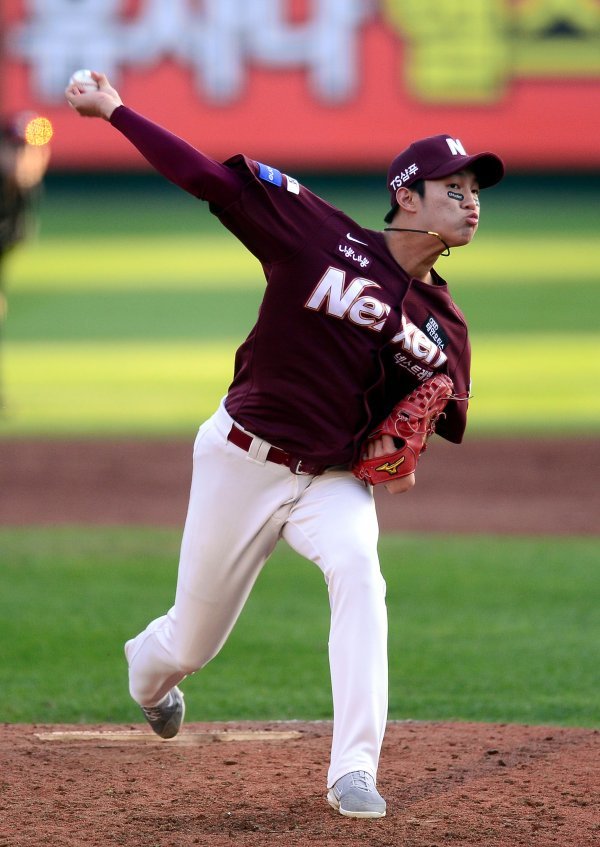 그러나 안우진은 첫판부터 강렬한 투구로 존재감을 뽐냈다. 높은 타점에 무브먼트까지 뒷받침된 강속구는 최고의 무기였다. 제구력까지 향상한 덕분에 최고구속 140㎞에 이르는 고속 슬라이더의 위력도 배가했다. 이날도 7회까지 기록한 투구수 51개 가운데 37개가 스트라이크였다. 간간이 섞어 던진 커브와 체인지업은 ‘투 피치’ 위주의 단순한 피칭메뉴를 보완하기에 부족함이 없었다. “마운드에 오를수록 변화가 느껴진다. 이것저것 많이 시도하려는 모습이 좋았다”며 그를 중용키로 결정한 장 감독의 판단이 옳았다. 19세1개월20일의 나이로 준PO 최연소 승리투수라는 기록까지 거머쥐었다.