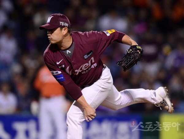 20일 대전 한화생명이글스파크에서 한화이글스와 넥센히어로즈가 맞붙는 ‘2018 신한은행 MY CAR KBO리그’ 준플레이오프 2차전이 열렸다. 9회말 교체 등판한 넥센 김상수가 역투하고 있다.