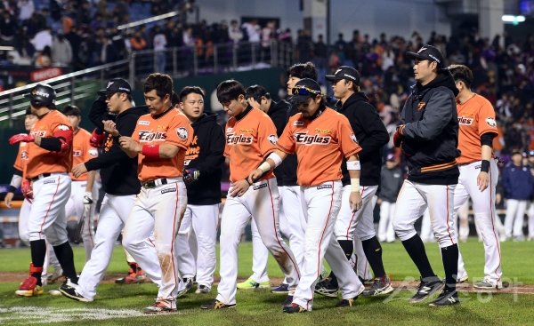 20일 대전 한화생명이글스파크에서 한화이글스와 넥센히어로즈가 맞붙는 ‘2018 신한은행 MY CAR KBO리그’ 준플레이오프 2차전이 열렸다. 5-7로 패하며 준PO 전적 2패를 기록한 한화 선수들이 경기장을 빠져나가고 있다.