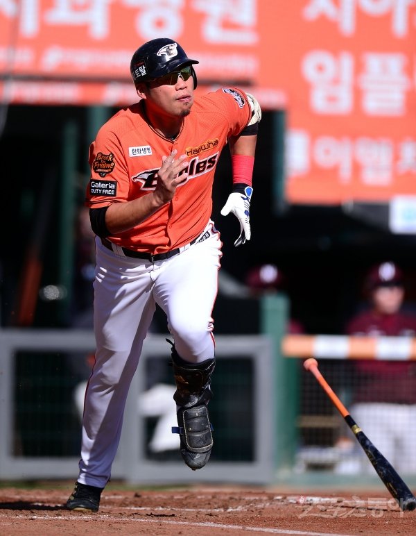 20일 대전 한화생명이글스파크에서 한화이글스와 넥센히어로즈가 맞붙는 ‘2018 신한은행 MY CAR KBO리그’ 준플레이오프 2차전이 열렸다. 2회말 1사 한화 최진행이 우전 안타를 치고 있다.
