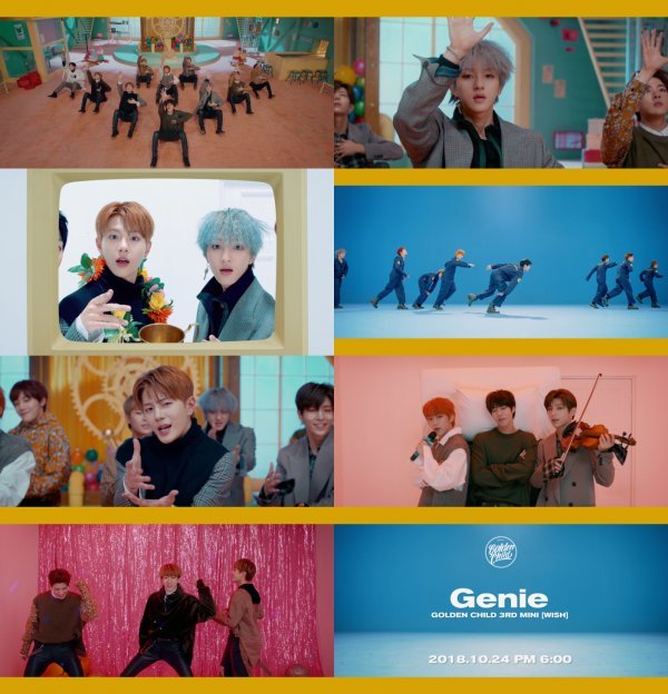 골든차일드(이대열, Y, 이장준, TAG, 배승민, 봉재현, 김지범, 김동현, 홍주찬, 최보민)는 22일 0시 네이버 V LIVE를 통해 세 번째 미니앨범 타이틀곡 ‘지니(Genie)’ 1분 버전 뮤직비디오 티저 영상을 단독 공개했다.