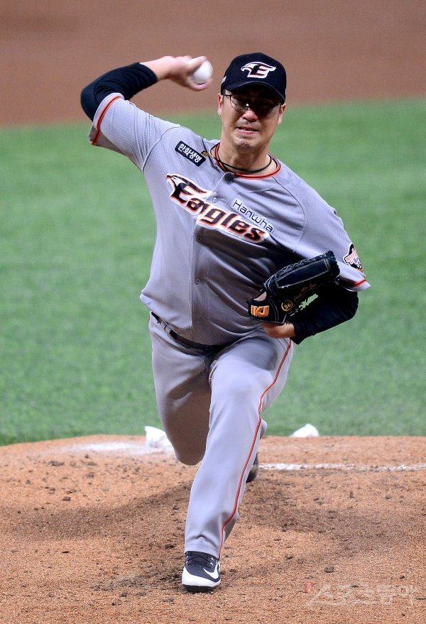 선발 투수로 등판한 한화 장민재가 역투하고 있다.