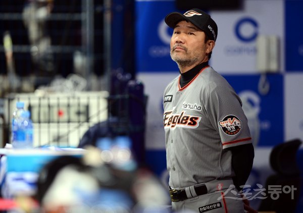 2-3으로 뒤진 한화 한용덕 감독이 경기를 지켜보고 있다.