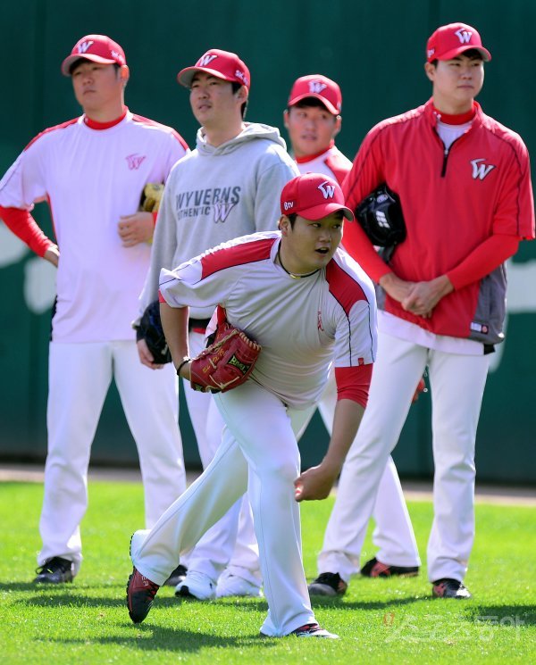 24일 인천 SK행복드림구장에서 ‘2018 신한은행 마이카 KBO리그’ SK 와이번스가 넥센히어로즈와의 플레이오프를 앞두고 훈련을 가졌다. SK 김태훈이 투수들과 수비를 훈련하고 있다.
