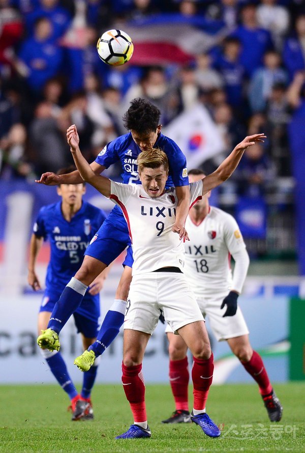 24일 수원월드컵경기장에서 펼쳐진 수원삼성과 가시마 앤틀러스(일본)의 아시아챔피언스리그(ACL) 준결승 2차전에서 수원 최성근이 공중볼을 다투고 있다.