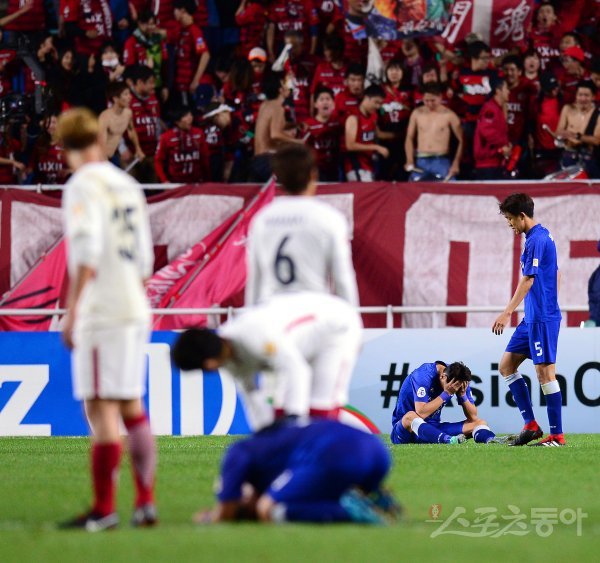 24일 수원월드컵경기장에서 펼쳐진 수원삼성과 가시마 앤틀러스(일본)의 아시아챔피언스리그(ACL) 준결승 2차전에서 3-3 동점를 기록해 결승 진출이 좌절된 수원 선수들이 아쉬워하고 있다.