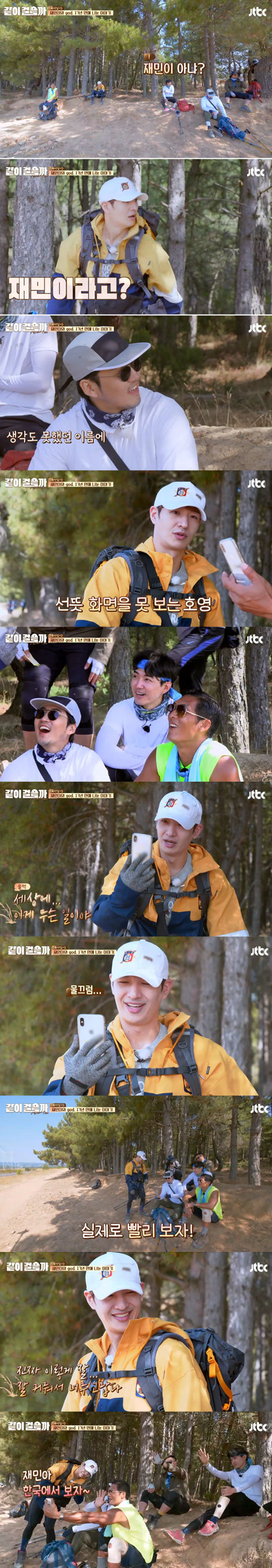 25일 방송된 JTBC ‘같이 걸을까’에서는 god와 재민이가 영상통화를 하는 모습이 그려졌다. 재민이는 과거 god가 출연했던 육아 리얼리티 프로그램 ‘육아일기’에서 멤버들과 함께 동고동락했던 아기. 당시 1살이었던 재민이는 21살 청년이 돼 있었다.