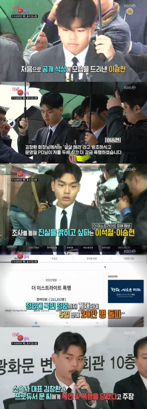 그룹 더 이스트라이트 이승현이 문영일 PD, 김창환 대표에게 폭언, 폭행을 당했다고 말했다.