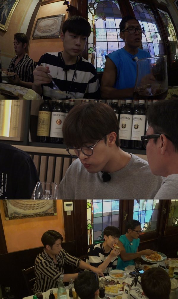 미식의 나라 이탈리아에서 첫 일정 중 현지 가이드의 추천으로 맛집을 방문하게 된 이들은 기대대로 쉴 새 없는 ‘먹방’을 펼쳤다. 다른 멤버들이 이미 포크를 내려놓았는데도 성훈은 ‘한 손 접시, 한 손 포크’ 신공을 펼쳤고, 선호 역시 이에 질세라 복스러운 포크질로 ‘먹방계의 샛별’이라는 이름값을 톡톡히 해냈다는 후문이다.