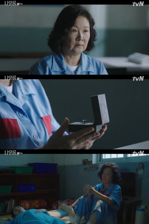tvN 토일드라마 \'나인룸\' 김해숙이 김영광과 나눈 커플링을 전달받았다.
