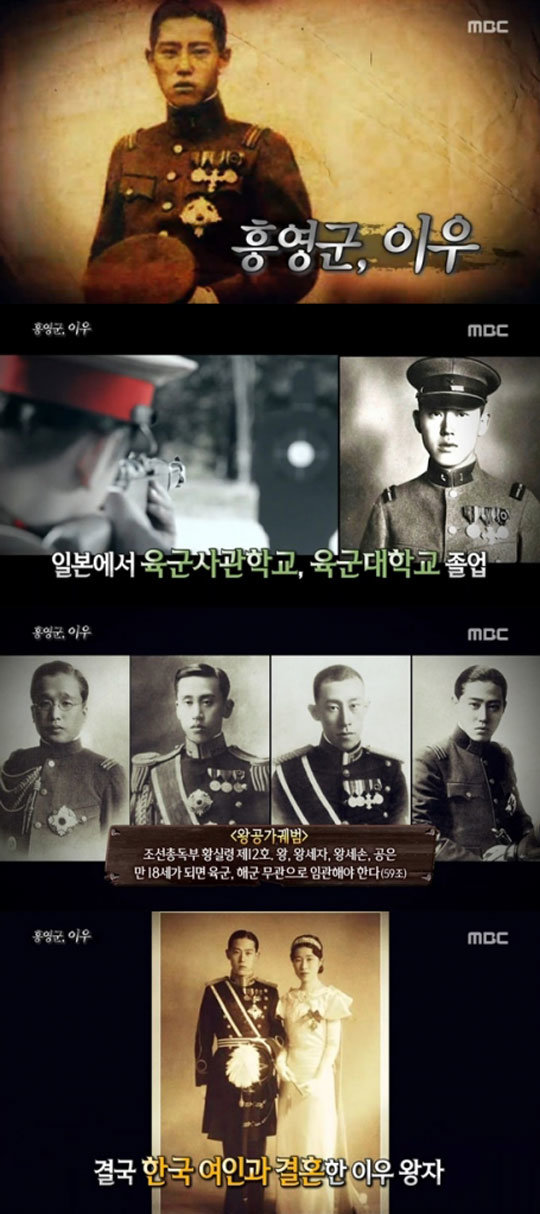 이우 왕자는 11살에 일본으로 유학을 가 육군사관학교, 육군대학교를 졸업하고 각종 전쟁에서 공을 세웠다. 이에 많은 이들은 그를 친일파라고 손가락질을 했다.