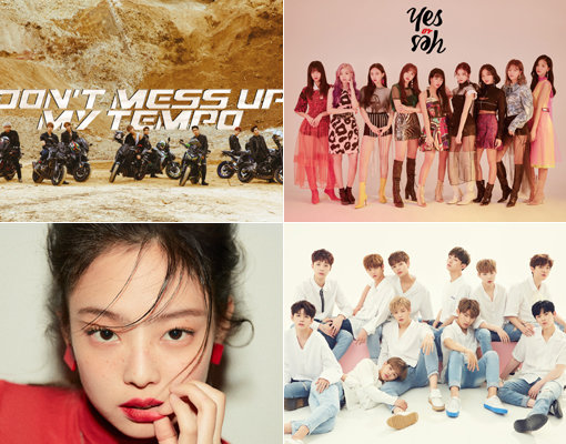 그룹 엑소-트와이스-워너원-블랙핑크 제니(왼쪽 상단부터 시계 방향으로). 사진제공|SM엔터테인먼트·JYP엔터테인먼트·스윙엔터테인먼트·YG엔터테인먼트
