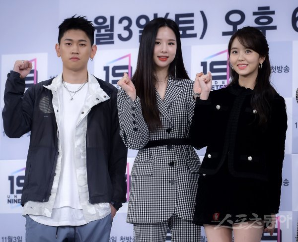 가수 크러쉬와 EXID 솔지, 배우 김소현(왼쪽부터)이 30일 서울 마포구 상암동 MBC에서 진행된 새 주말 예능 ‘언더나인틴’ 제작발표회에서 포즈를 취하고 있다.
