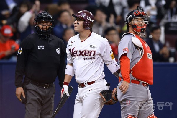 3회말 1사 넥센 박병호가 헛스윙 삼진으로 물러나고 있다.