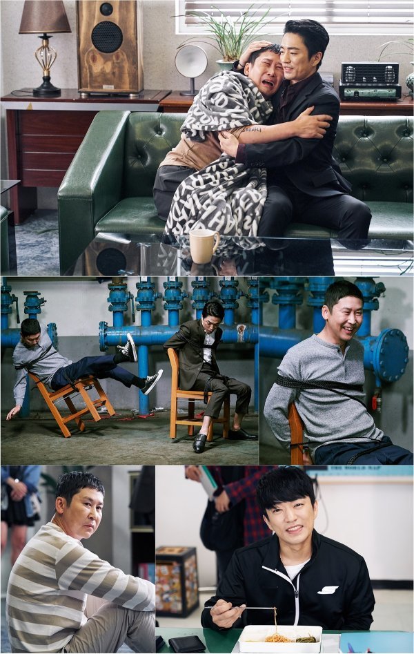 막무가내 ‘노답’ 채무자와 독설왕 사채업자로 분해 시청자를 울고 웃기는 신동엽과 정문성은 회가 거듭될수록 찰떡 ‘웃음’ 시너지를 발휘하고 있다. 아보카도 금융 워크숍 아부 작전부터 위기일발 탈출기까지, 웃음 명장면을 갱신한 두 사람의 차진 브로케미가 비하인드 사진 속에 고스란히 담겨있다. 공개된 사진에는 극중 으르렁 케미와 달리 훈훈한 두 사람의 촬영 현장이 담겨있다. 폭풍 오열을 하고 있지만 왠지 모르게 웃음을 유발하는 신동엽을 안아주는 정문성. 능청스런 코믹 연기에 웃음을 참지 못하는 정문성의 표정이 시선을 사로잡는다. 채무자들에게 함께 납치돼 창고에 갇힌 웃픈 장면들에선 신동엽도 터져 나오는 웃음을 참지 못하는 모습이다. 정문성의 코믹한 발재간에 웃음이 제대로 터졌다.