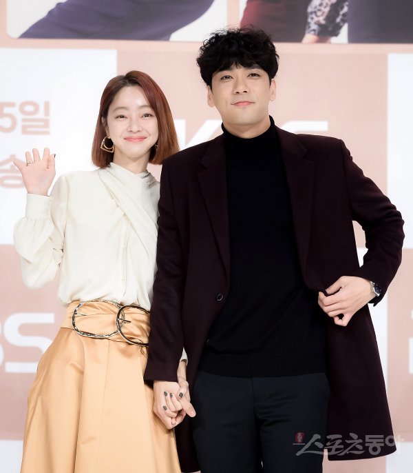 배우 서효림과 박윤재(오른쪽)가 31일 서울 영등포 타임스퀘어 내 아모리스 홀에서 열린 KBS1TV 새 일일드라마 ‘비켜라 운명아’ 제작발표회에 참석해 포즈를 취하고 있다.