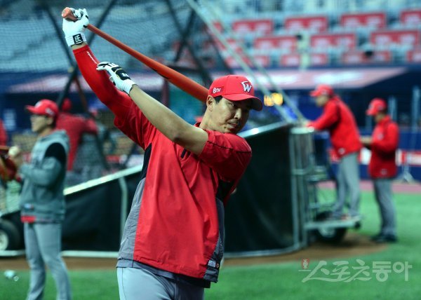 경기에 앞서 SK 한동민이 타격 훈련을 하고 있다.