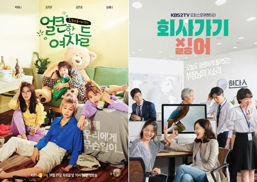 KBS Joy ‘얼큰한 여자들’(왼쪽)-KBS 2TV ‘회사 가기 싫어’. 사진제공|KBS Joy·KBS