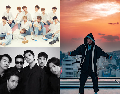 그룹 워너원-밴드 장기하와 얼굴들-가수 드렁큰 타이거(왼쪽 상단부터 반시계 방향으로). 사진제공|스윙엔터테인먼트·두루두루 아티스트 컴퍼니·필굿뮤직