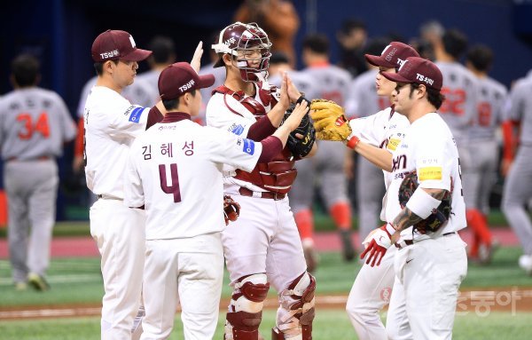 경기 후 넥센 선수들이 기쁨을 나누고 있다.