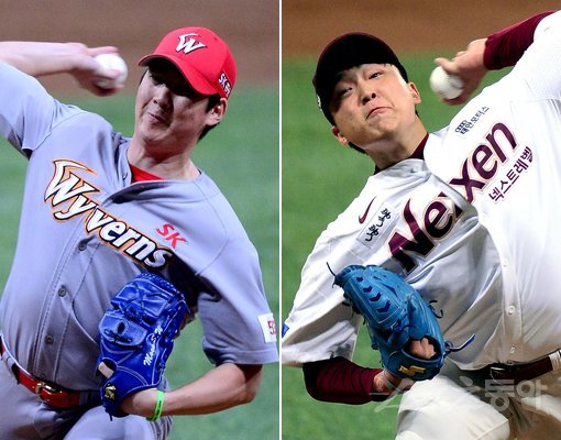 SK 문승원(왼쪽)-넥센 이승호. 고척|김종원 기자 won@donga.com