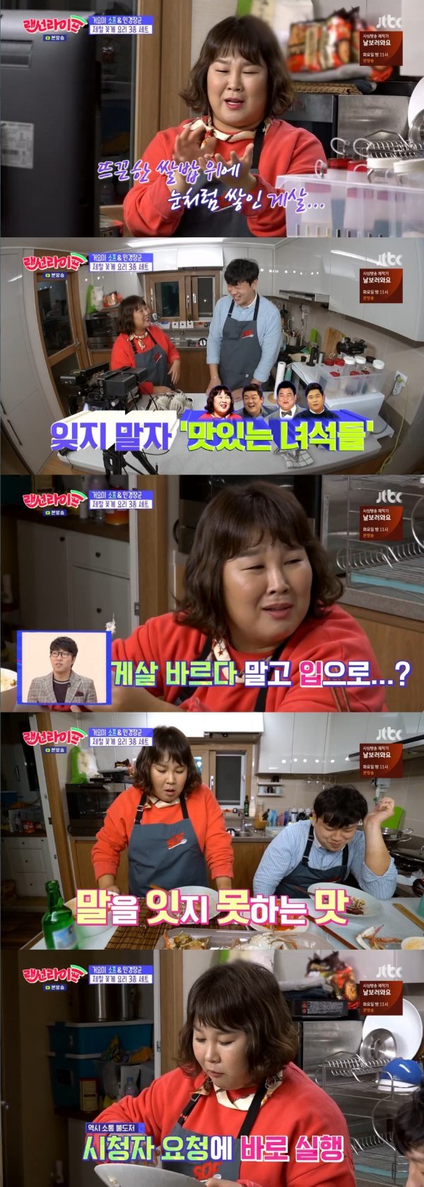 어제(2일) 방송된 JTBC 예능프로그램 ‘랜선라이프-크리에이터가 사는 법’에서 개그우먼 김민경이 크리에이터 ‘소프’와 함께하는 컬래버레이션 쿡방에 도전했다. 유튜브 채널 ‘민경장군’에서 힐링 쿡방, 먹방으로 사랑받고 있는 그녀답게 유쾌하고 맛있는 웃음을 선사했다.