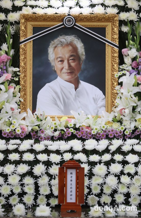 그는 “선배님은 감히 범접할 수 없는 스타였습니다. 선배님은 배우가 되어 왕도 되어보고 영웅도 되어보고 만인의 연인으로 살아보셨으니 이 세상의 미련은 버리셔도 될 것 같습니다. 선배님 같은 은총과 축복을 누린 인생이 과연 있었겠습니까”라며 “같은 시대에 산 것이 행운이었습니다. 선배님은 한국 영화의 전설이었고 역사였습니다. 이제 선배님은 하늘의 별이 되셨으니 지상에 살아있는 가족들을 살펴보시고 영화의 길을 밝게 비춰주시기 바랍니다”라고 전했다. 그는 “큰 별은 사라지지 않는다. 다만 육신의 죽음만이 있을 뿐”이라는 말로 추도사를 마쳤다.