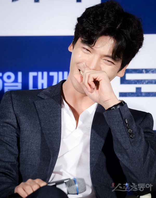 배우 김성오가 6일 서울 중구 메가박스 동대문에서 열린 영화 ‘도어락’ 제작보고회에 참석해 환하게 웃고 있다.