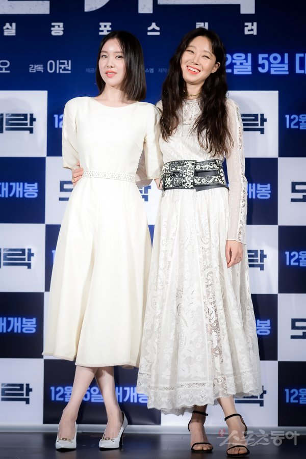 배우 김예원과 공효진(오른쪽)이 6일 서울 중구 메가박스 동대문에서 열린 영화 ‘도어락’ 제작보고회에 참석해 포토타임을 갖고 있다.