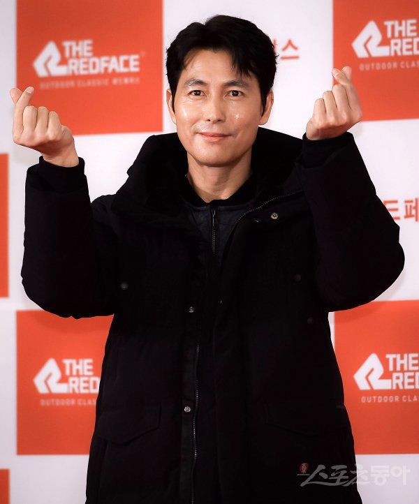 배우 정우성이 8일 경기도 부천시 홈플러스 부천상동점에서 열린 아웃도어 브랜드 레드페이스의 신제품 ‘정우성 롱패딩’ 출시 기념 사인회에 참석해 포토타임을 갖고 있다.