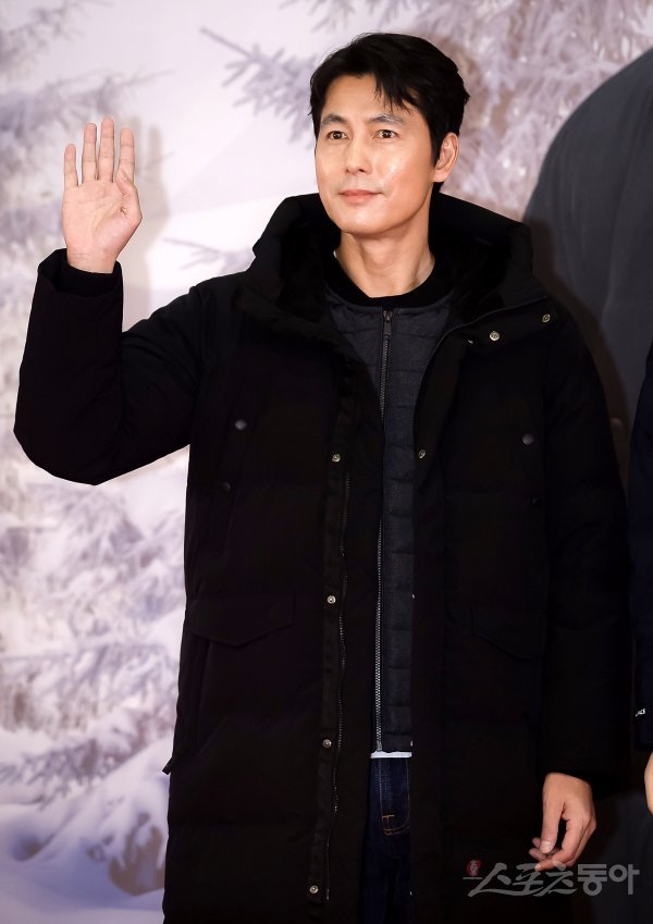배우 정우성이 8일 경기도 부천시 홈플러스 부천상동점에서 열린 아웃도어 브랜드 레드페이스의 신제품 ‘정우성 롱패딩’ 출시 기념 사인회에 참석해 포토타임을 갖고 있다.
