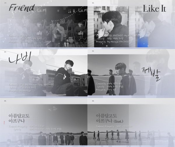 오디오 티저 영상에는 타이틀곡 \'아름답고도 아프구나\'를 비롯해 수록곡 \'Like It\', \'나비\', \'제발\'과 타이틀곡 \'아름답고도 아프구나\'의 인스트루멘탈 버전까지 총 6곡의 하이라이트 음원이 담겨있다.