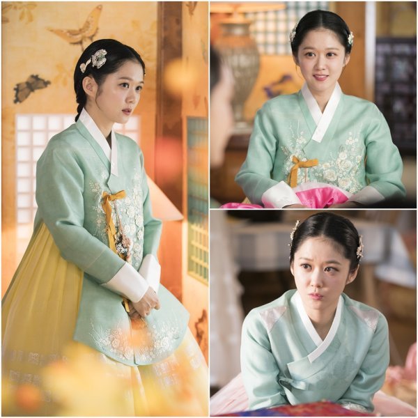 이와 관련 장나라가 황후가 되기 전, 단아하면서도 여리여리한 ‘써니 아씨’의 포스를 선보였다. 극중 곱게 땋아 내린 댕기머리와 화사한 한복을 입은 오써니가 태황태후와 태후를 알현하기 위해 궁에 입궐하는 장면. 아름다운 꽃이 소복하게 수놓아진 연녹색 당의에 샛노란 한복 치마를 입은 채 싱그러운 미소를 띠고 있는 장나라의 모습이 청초한 매력을 분출하고 있다. 품격부터 다른, 예비 황후의 ‘넘사벽 꽃미모’를 고스란히 증명한 장나라의 변신이 어디까지 이어지게 될지, 호기심을 증폭시키고 있다.