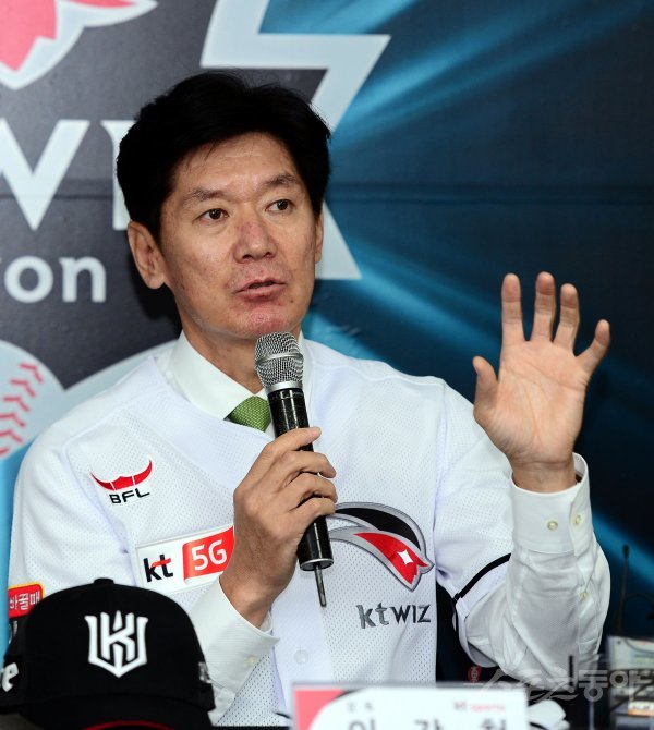 18일 경기도 수원 kt위즈파크에서 ‘kt위즈 이강철 감독 취임식’이 열렸다. 이강철 kt 신임 감독이 취임 소감을 밝히고 있다.