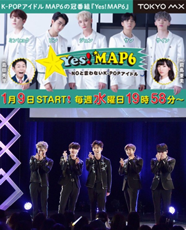 19일 소속사 올에스엔터테인먼트는 오는 1월 9일부터 일본 지상파 방송사TOKYO MX TV에서 리얼리티 \'Yes! MAP6\'가 방송을 시작한다고 발표했다.
