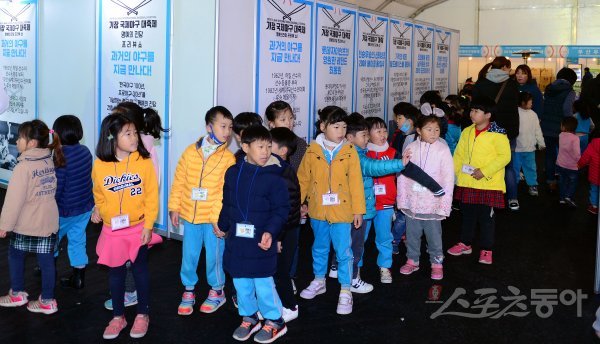 기장군이 주최하고 (주)오투에스앤엠과 부산광역시야구소프트볼협회, 스포츠동아가 주관하는 ‘2018 기장 국제야구 대축제’가 20일 부산 기장군 기장현대차드림볼파크에서 열렸다. 기장군 내 유치원생들이 행사장을 둘러보고 있다.