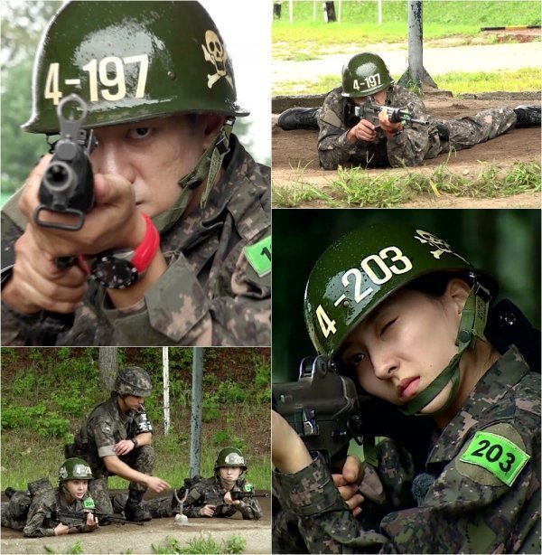 '진짜사나이300' 제작진은 22일 박재민과 은서의 카리스마 넘치는 사격술 예비훈련 현장 스틸을 공개했다.