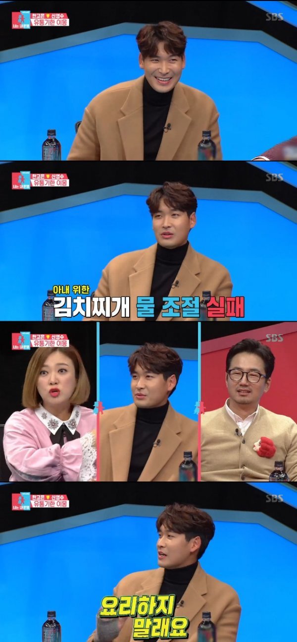 정겨운은 "아내가 피아노를 잘 친다. 장학금도 받는다"며 "그런데 예민하다. 아내를 위해서 김치찌개를 끓였는데 물 조절에 실패했었다. 한 번 실수였는데 나보고 요리하지 말라더라"라고 아내에게 섭섭했던 점을 이야기했다.