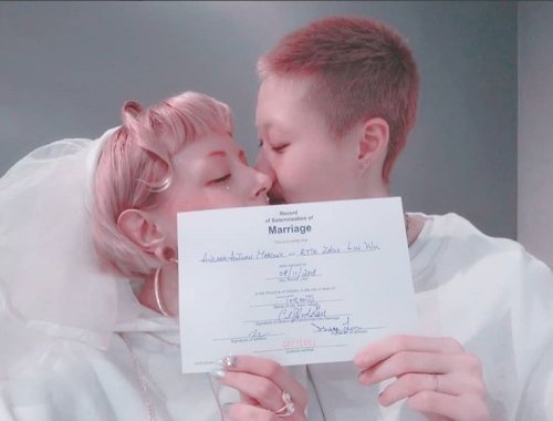 공개된 사진 속 두 사람은 결혼 증명서를 공개한 채 입을 맞추는 모습이다. 이에 따르면 8일 캐나다에서 혼인신고를 한 것으로 보인다. 캐나다는 법적으로 동성결혼을 허용하는 곳이다.