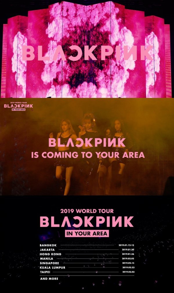 블랙핑크 데뷔 첫 해외투어 \'BLACKPINK 2019 WORLD TOUR [IN YOUR AREA]\'는 2019년 1월 12, 13일 방콕을 시작으로 1월 20일 자카르타, 1월 26일 홍콩, 2월 2일 마닐라, 2월 15일 싱가포르, 2월 23일 쿠알라룸프르, 3월 3일 타이베이로 이어진다.