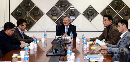 27일 서울 도곡동 KBO회관에서 kt 강민국 음주운전 관련 상벌위원회가 열렸다. 상벌위원회에 참석한 전용배, 김도균, 최원현 상벌위원장, 김시진, 이재국 위원들(왼쪽부터)이 회의를 하고 있다. 김민성 기자 marineboy@donga.com