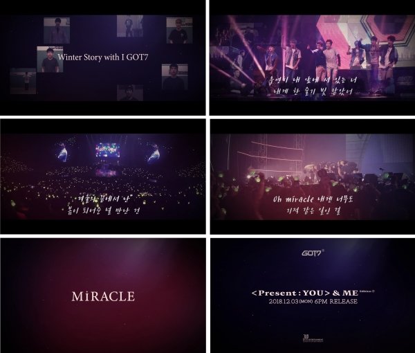그룹 GOT7이 12월 3일 컴백을 앞두고 신곡 '미라클(MIRACLE)의 음원 일부와 팬들에 대한 감사의 마음을 전하는 영상 'Winter Story with I GOT7'을 공개해 감동을 선사했다.