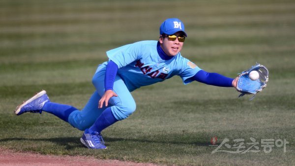 고등부 준결승 부산고와 개성고 경기에서 부산고 김태규가 다이빙캐치를 시도했으나 놓치고 있다.