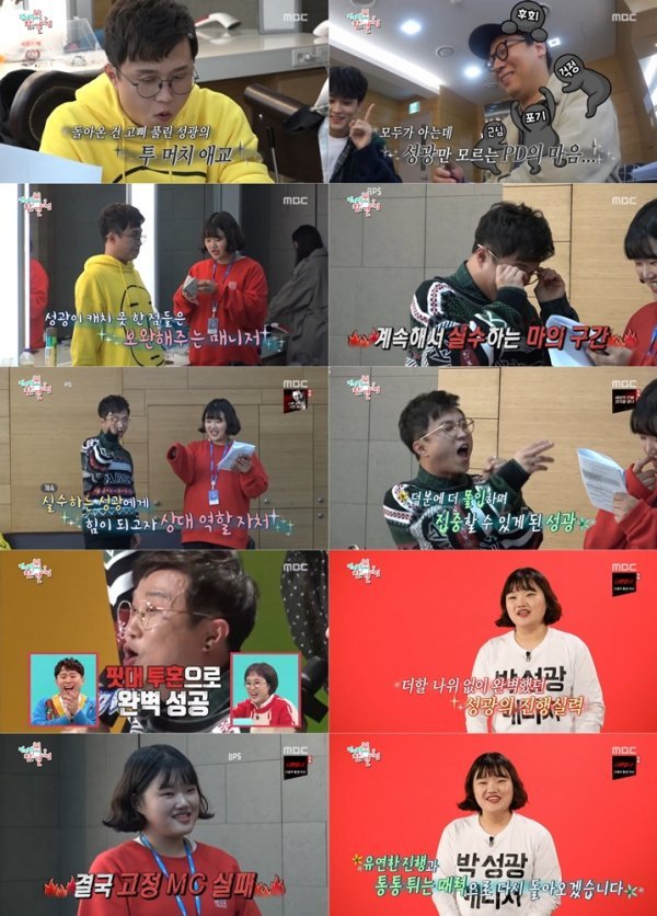 그 결과 박성광은 생방송에서 계속 틀렸던 마의 구간을 무사히 통과했을 뿐만 아니라 긴 대사까지 완벽하게 해내면서 성공적으로 마쳤다. 이에 박성광과 매니저는 고정MC가 될 수 있지 않을까 기대를 품었지만 결국 실패해 보는 이들을 안타깝게 했다.